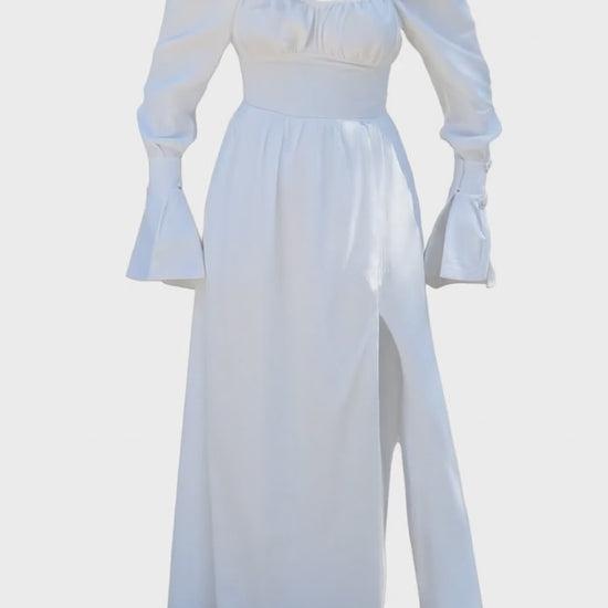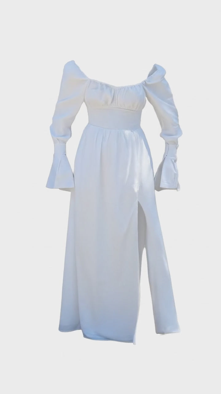 Este vestido largo de algodón es perfecto para cualquier ocasión. Con su manga larga y cintura ceñida, realza tu figura y te hace lucir elegante y femenina. El amplio escote elástico y las mangas fruncidas permiten cubrir o descubrir los hombros para revelar un encanto retro y refinado. Además, su cinturón largo y escote elástico te garantizan comodidad y estilo en todo momento. El vestido está confeccionado en sólo dos tallas, ya que gracias a la elasticidad del vestido y al cinturón podrás ajustar fácilmente el vestido a su talla. La talla XS se adapta a XS y S, y la talla M se adapta a M y L. Fabricado en España.